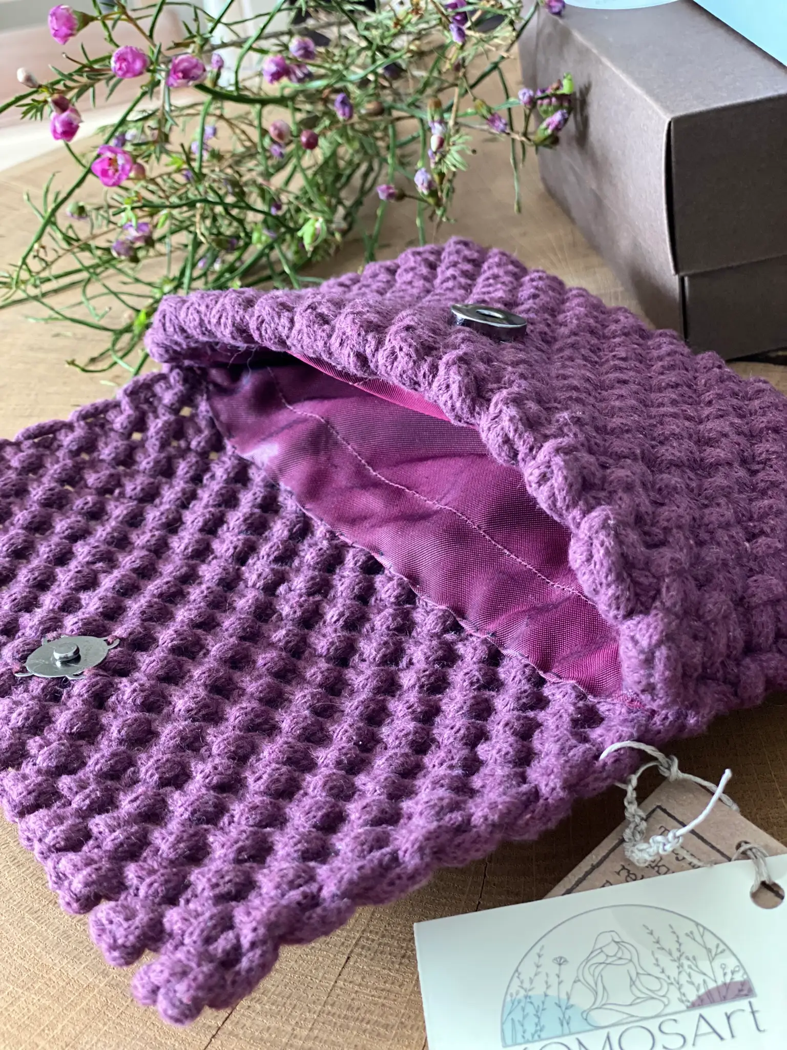 Jej Wysokość Jeżyna. Odkryj wyjątkową kopertówkę handmade wykonaną z najwyższej jakości bawełnianego sznurka w kolorze jeżyny. Stworzoną techniką makramy. Ta elegancka i stylowa torebka to połączenie tradycyjnego rzemiosła z nowoczesnym designem. Idealna na każdą okazję – zarówno na spotkanie z przyjaciółką, jak i na uroczystość typu wesele. Doskonale uzupełni każdą stylizację, dodając jej oryginalności.
