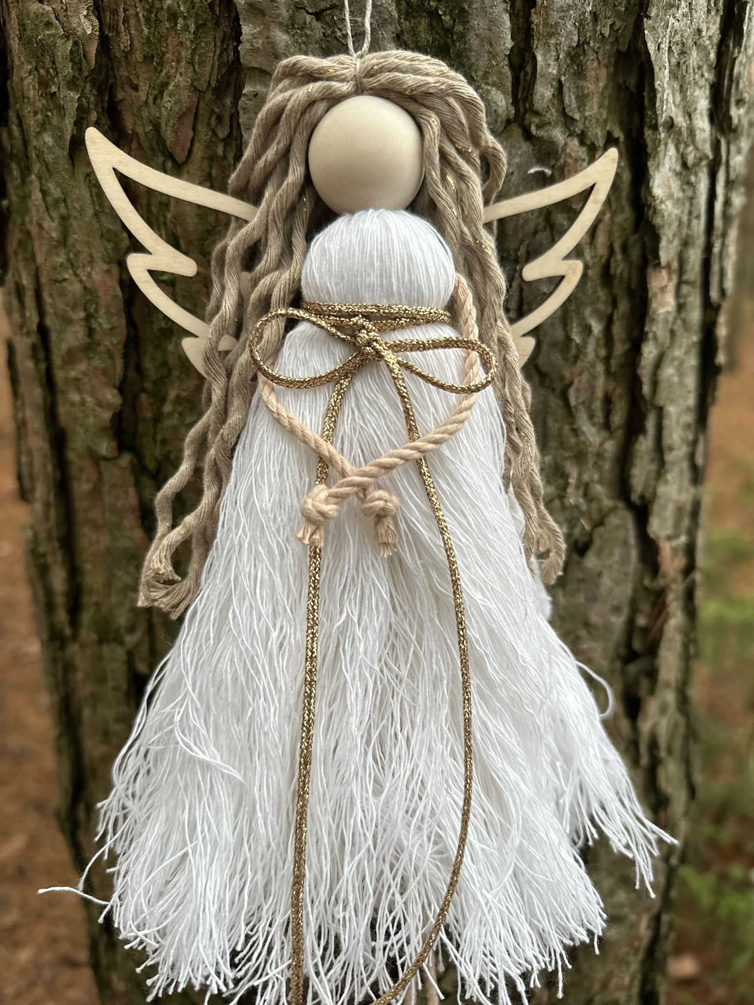 Leśny Anioł ze Sznurka z Drewnianymi Skrzydełkami