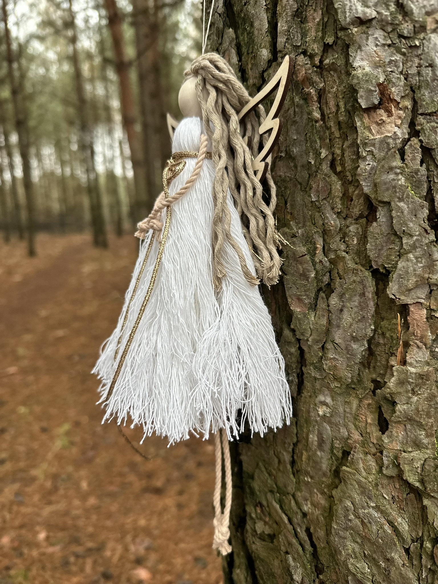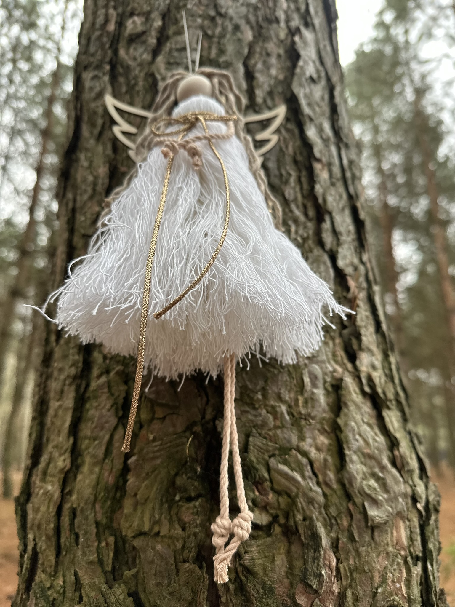 Odkryj wyjątkową ozdobę świąteczną, która wprowadzi do Twojego wnętrza magię lasu i naturalnego piękna. Leśny Anioł został ręcznie wykonany z najwyższej jakości bawełnianego sznurka, a jego delikatne, drewniane skrzydełka nadają mu niepowtarzalnego uroku.