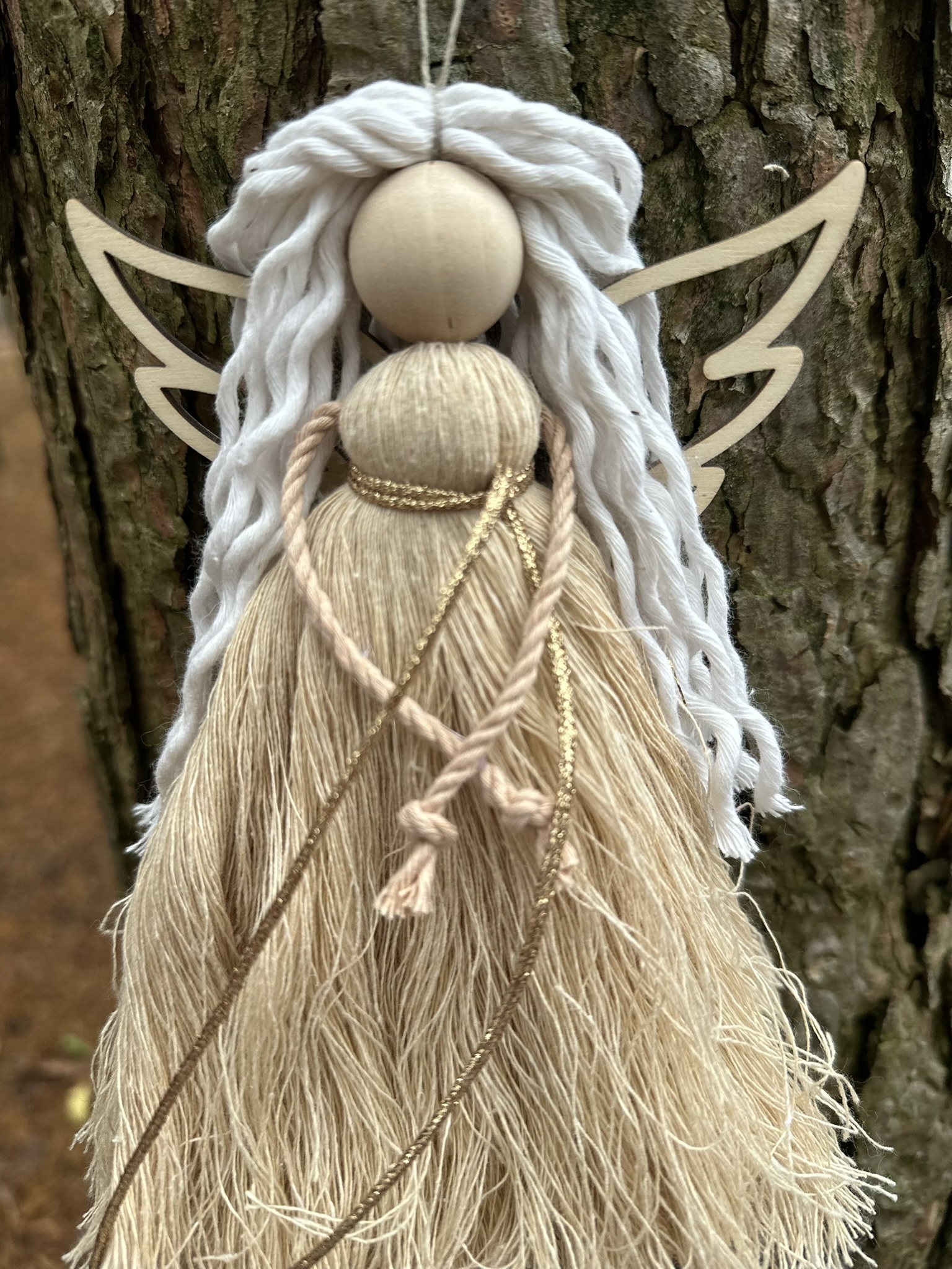 Leśny Anioł ze Sznurka z Drewnianymi Skrzydełkami
