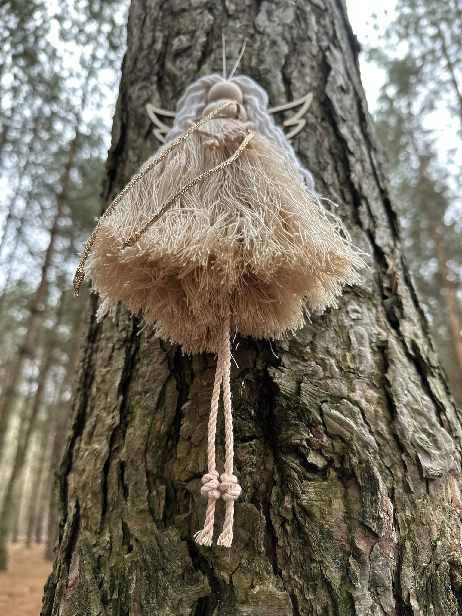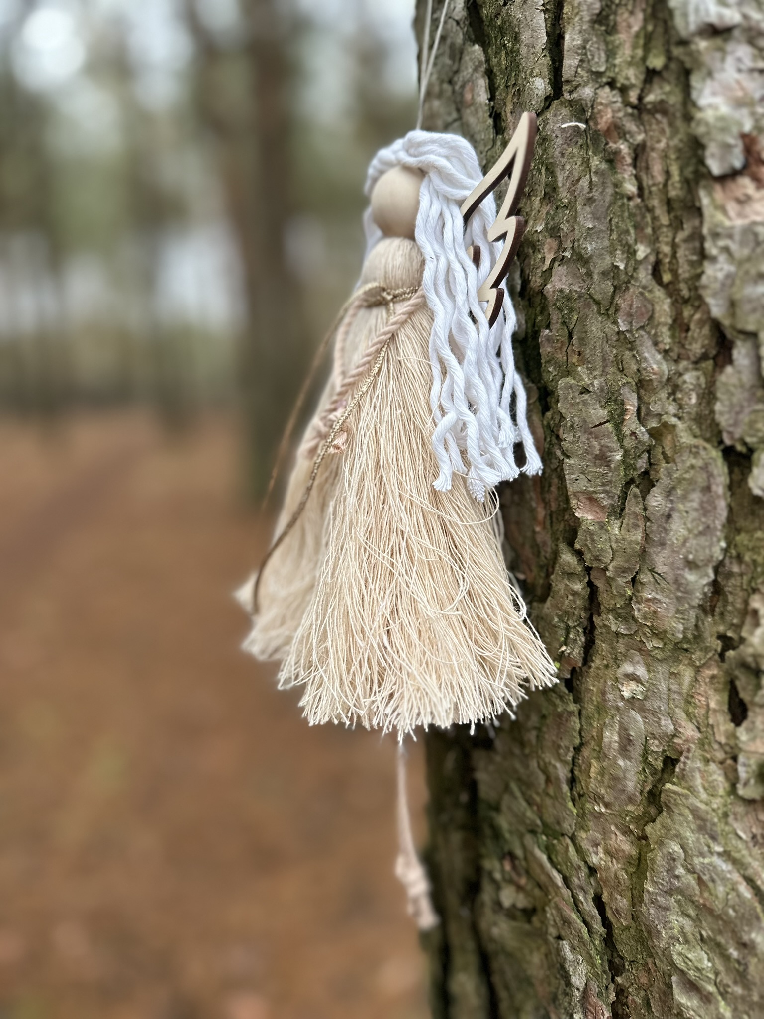 Odkryj wyjątkową ozdobę świąteczną, która wprowadzi do Twojego wnętrza magię lasu i naturalnego piękna. Leśny Anioł został ręcznie wykonany z najwyższej jakości bawełnianego sznurka, a jego delikatne, drewniane skrzydełka nadają mu niepowtarzalnego uroku.