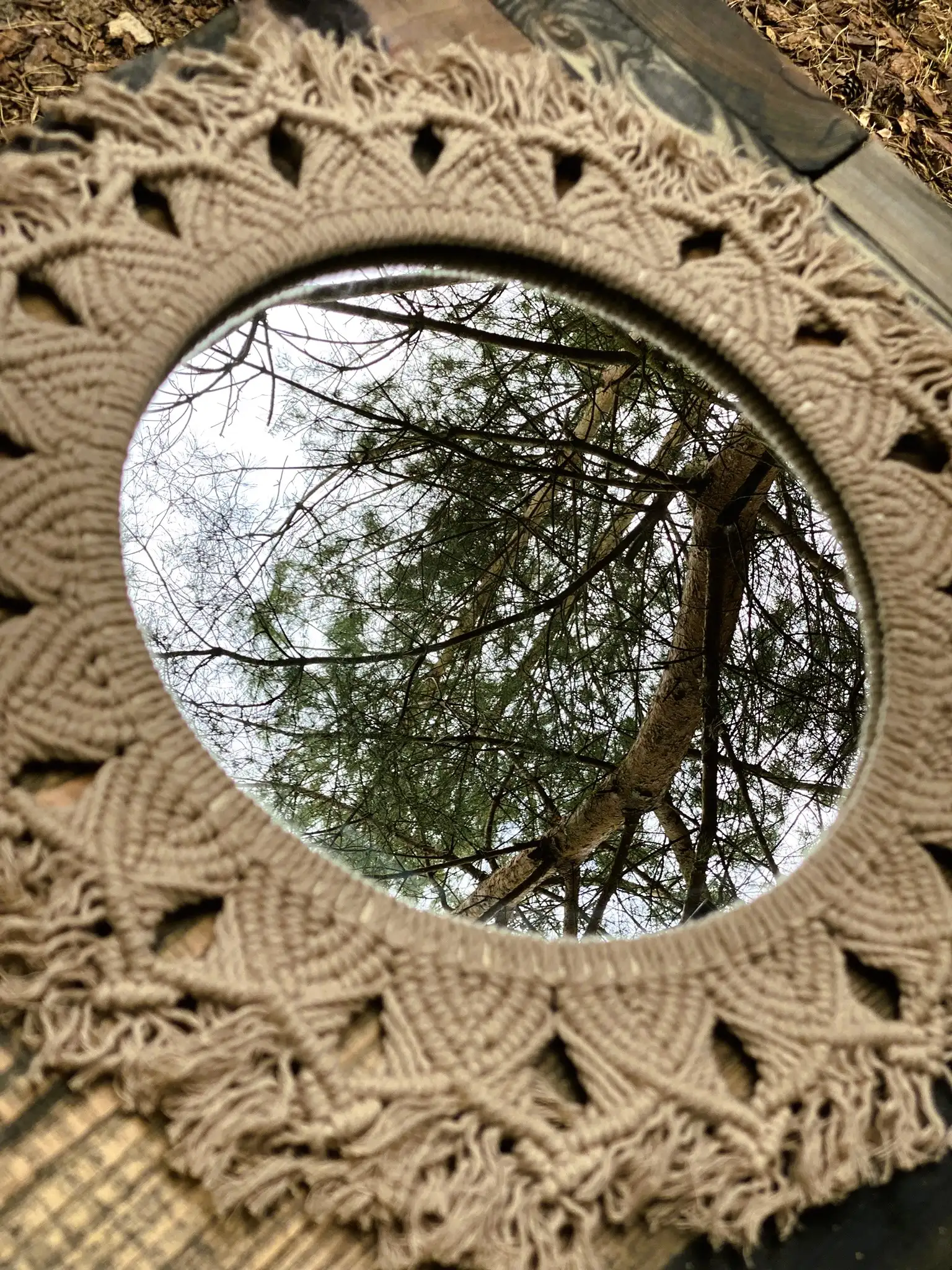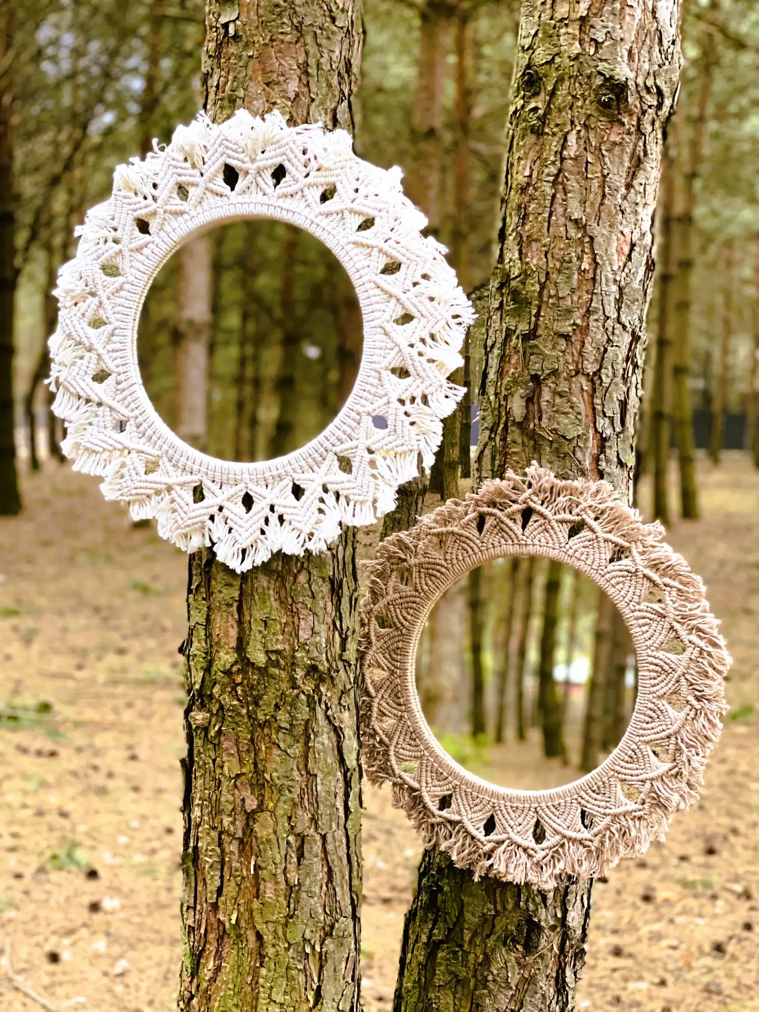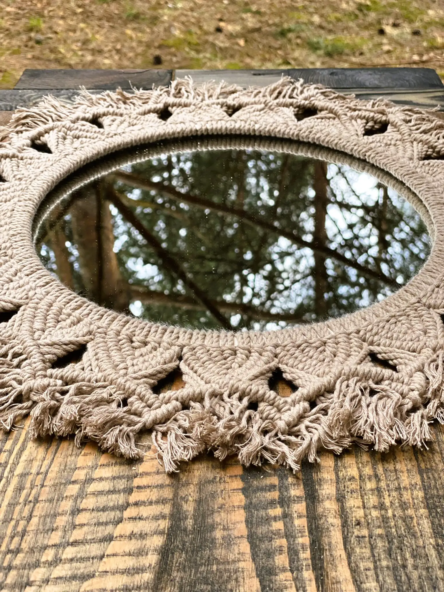 Oryginalne lustro z dekoracyjną obręczą z ręcznie wyplecionych wzorów z bawełnianego sznurka 3PLY, które doda Twojemu wnętrzu elegancji i wyjątkowego charakteru. Każde lustro jest tworzone na zamówienie, z możliwością dopasowania koloru sznurka do Twoich preferencji, co czyni je idealnym, personalizowanym elementem wystroju.