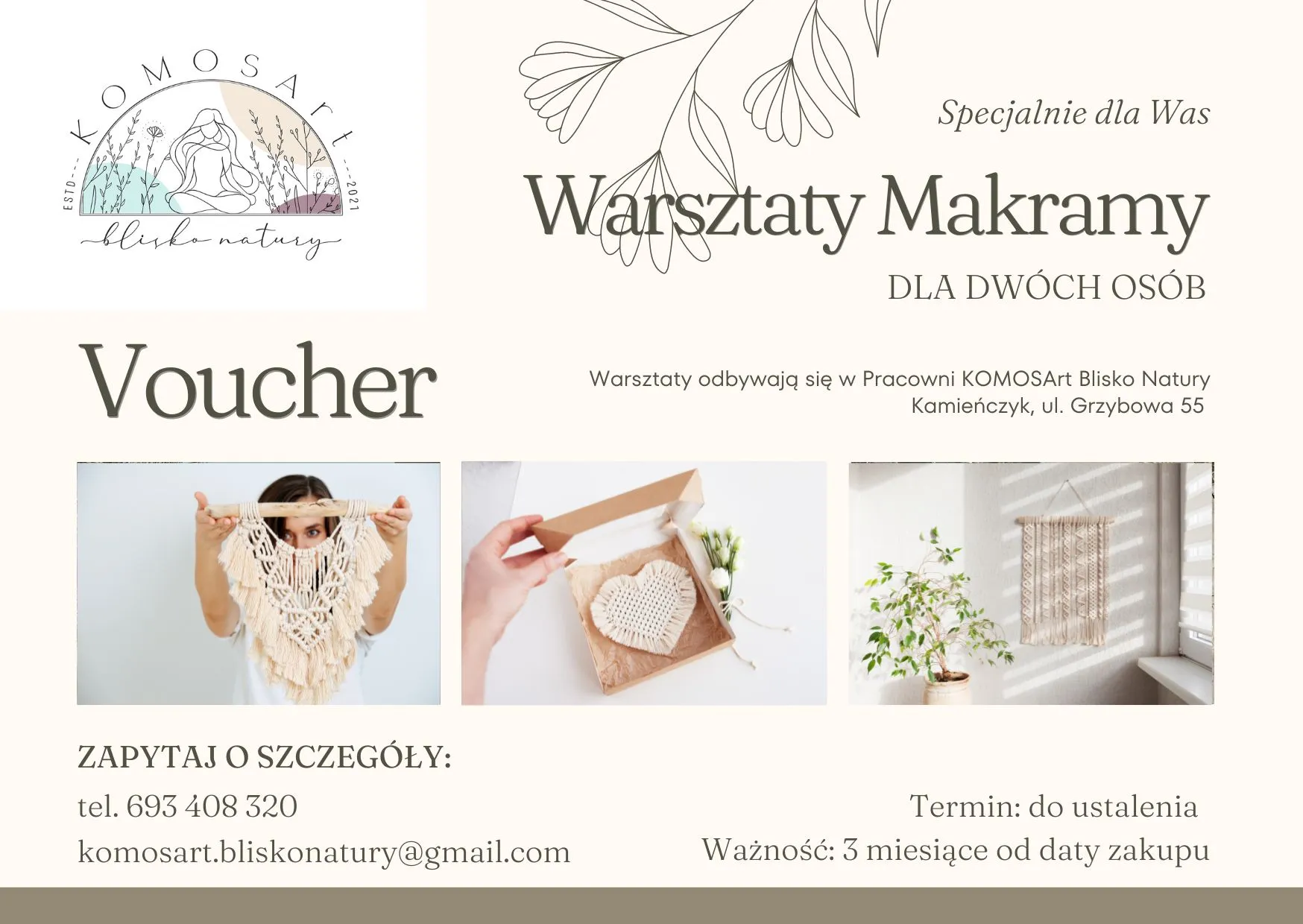 Pracowania KOMOSArt to miejsce, w którym możesz doświadczyć wyjątkowego stanu spokoju, radości i harmonii, zobaczyć proces tworzenia z bliska i wziąć udział w kameralnych warsztatach pracy ze sznurkiem, gdzie z radością dzielę się swoją pasją do rękodzieła.